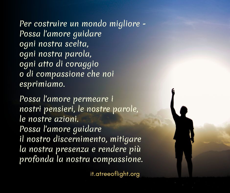 Lo spirito dell'Amore è attivo nel mondo ovunque ci siano persone coraggiose in grado di creare una forza contraria alle tenebre dell'aggressività, dell'avidità e dell'egoismo. AAS-I-027-F-It
